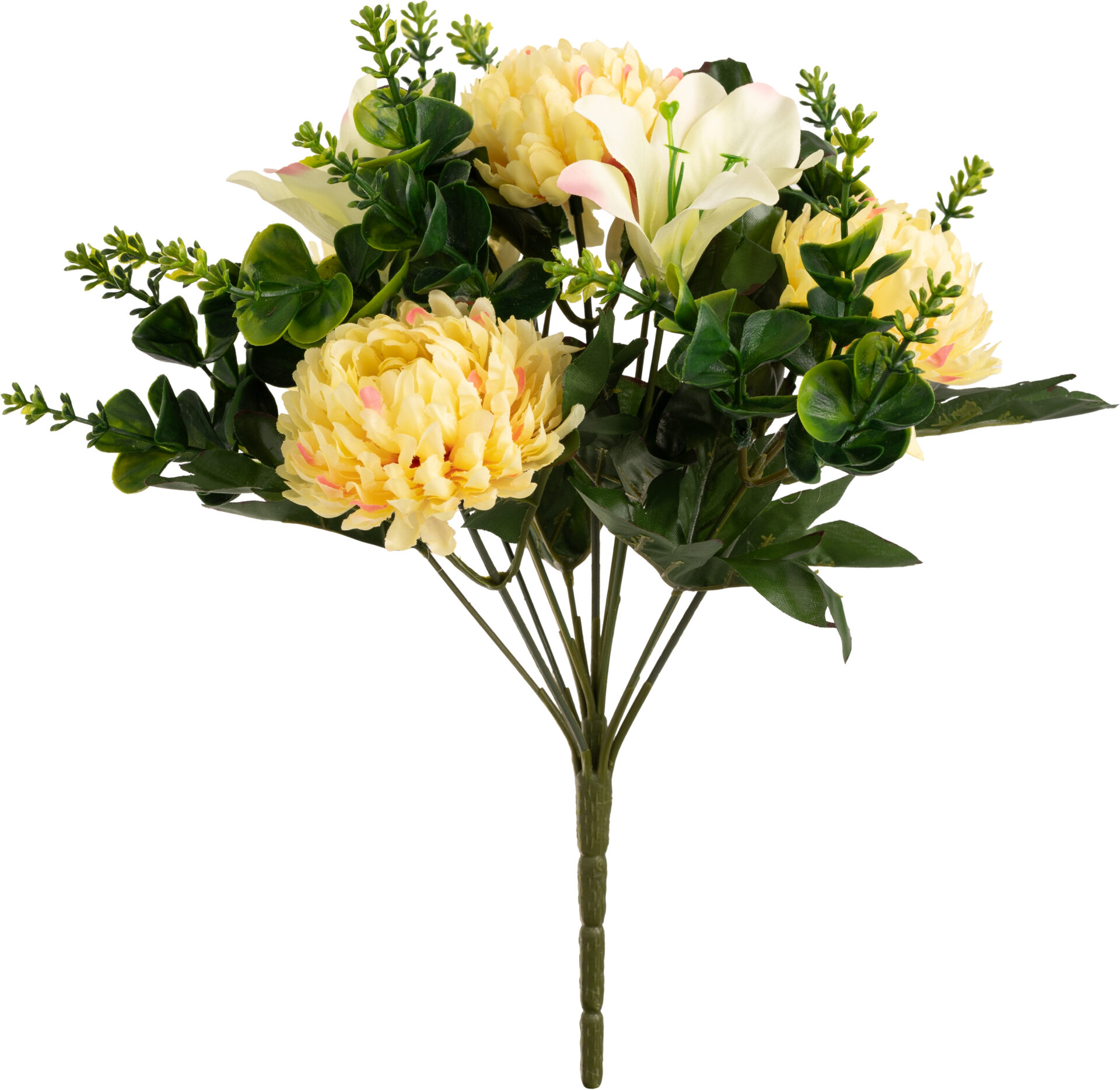 Eleganza Chrysanth, Lily And Eucalyptus 33cm Bush Ivory