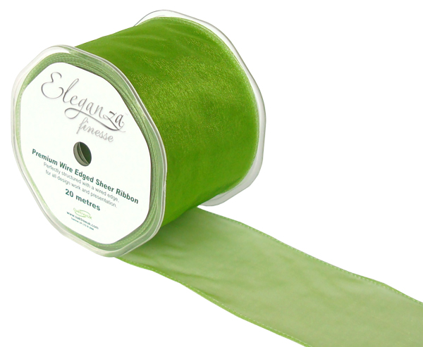 Eleganza Finesse Wired Ribbon 70mm X20m Pistachio Green No.27 quantity