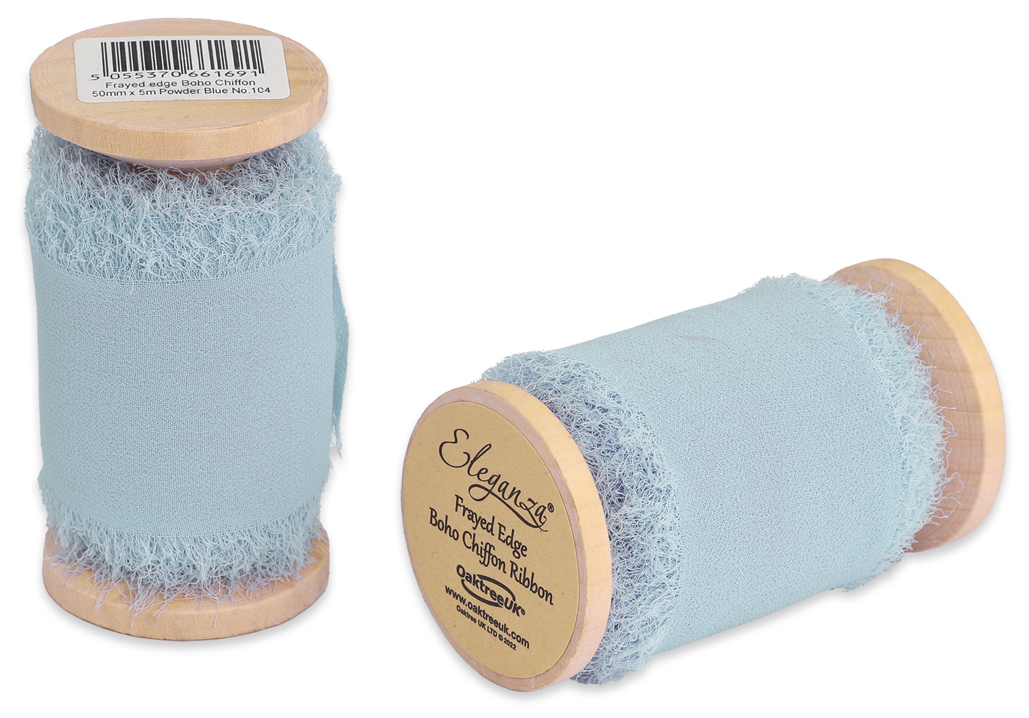 Eleganza Frayed Edge Boho Chiffon 50mm X 5m Powder Blue No.104