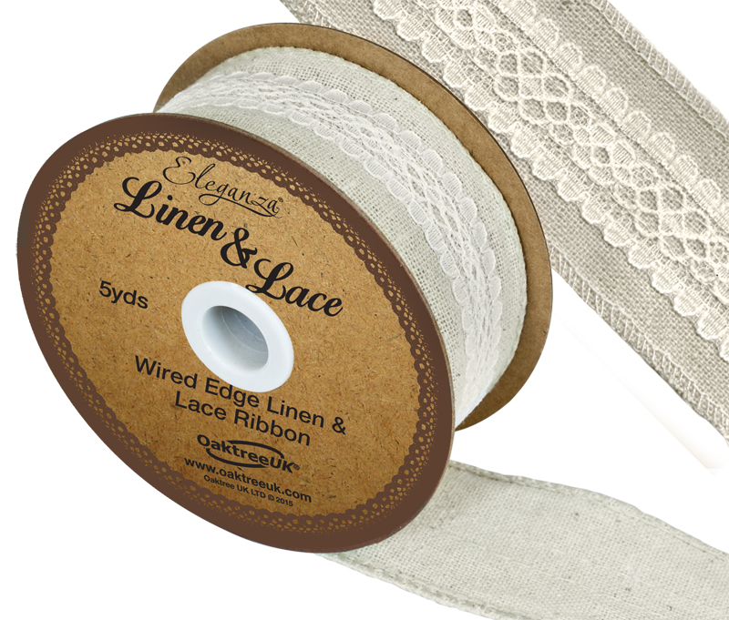 Eleganza Linen & Lace Wired Edge Pattern No.353 38mm X 5yds Ivory No.61