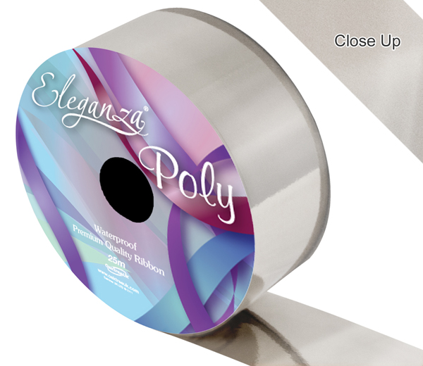 Eleganza Poly Ribbon 50mm X 25m Metallic Silver