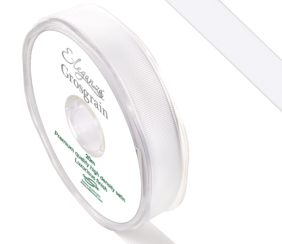 Eleganza Premium Grosgrain Ribbon 15mm X 20m White No.01