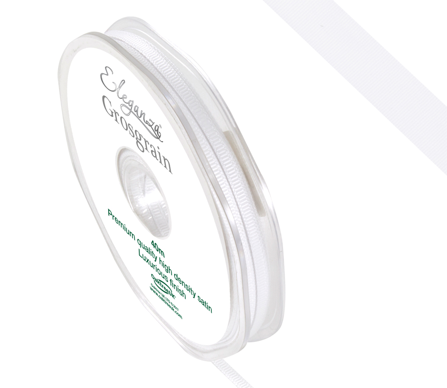 Eleganza Premium Grosgrain Ribbon 3mm X 40m White No.01