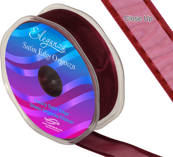 Eleganza Satin Edge Organza 25mm X 25m Burgundy No.17