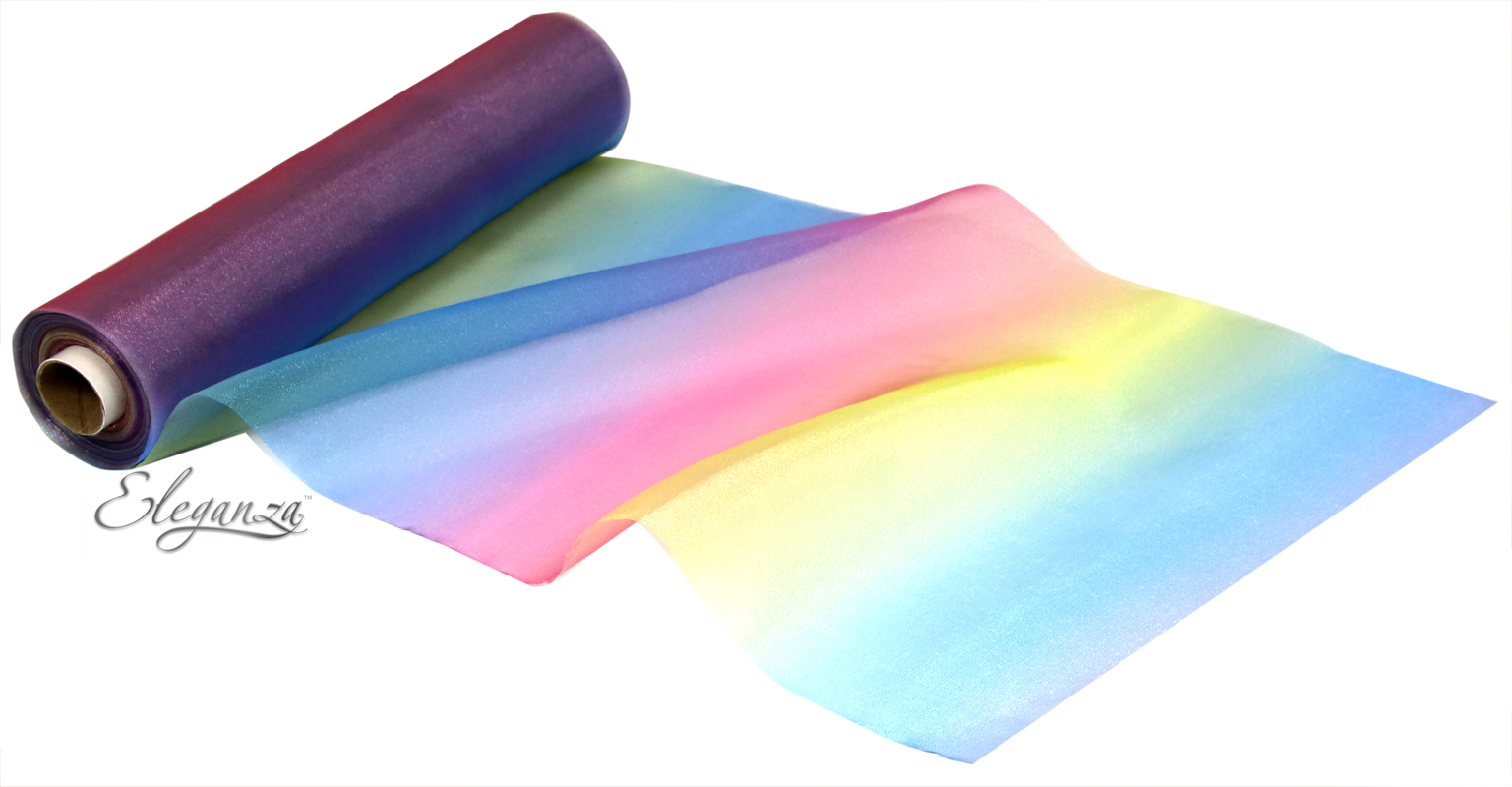 Eleganza Soft Sheer Organza 29cm X 20m Rainbow quantity