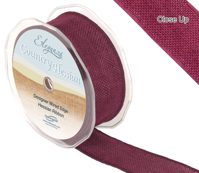 Eleganza Wired Country Hessian 38mm X 10m Burgundy No.17 quantity