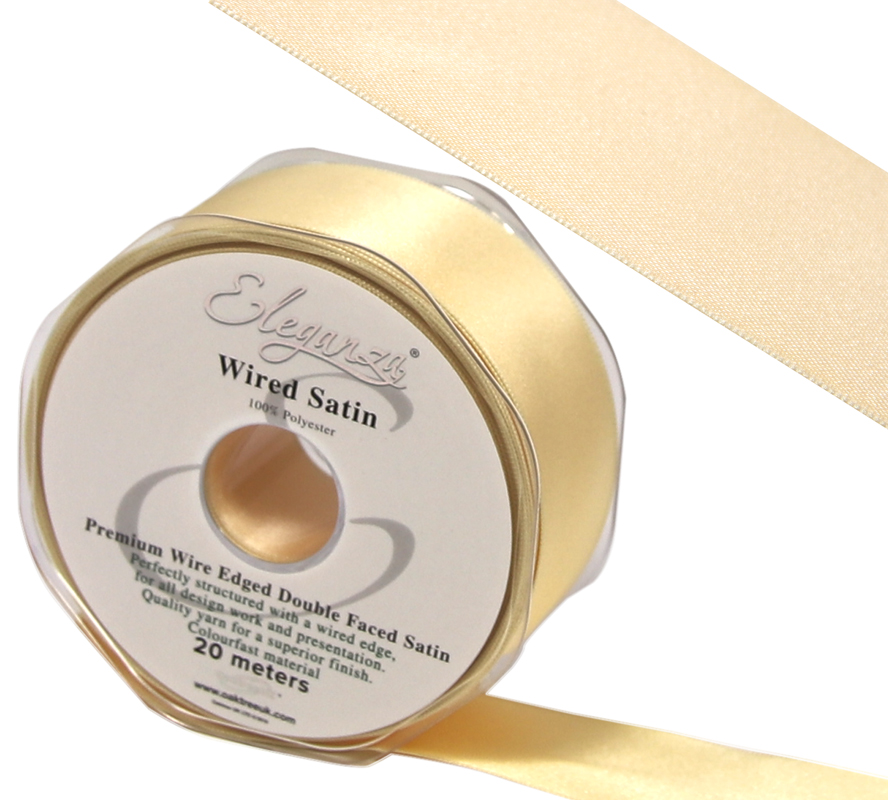 Eleganza Wired Edge Premium Double Faced Satin 25mm X 20m Buttermilk No.08