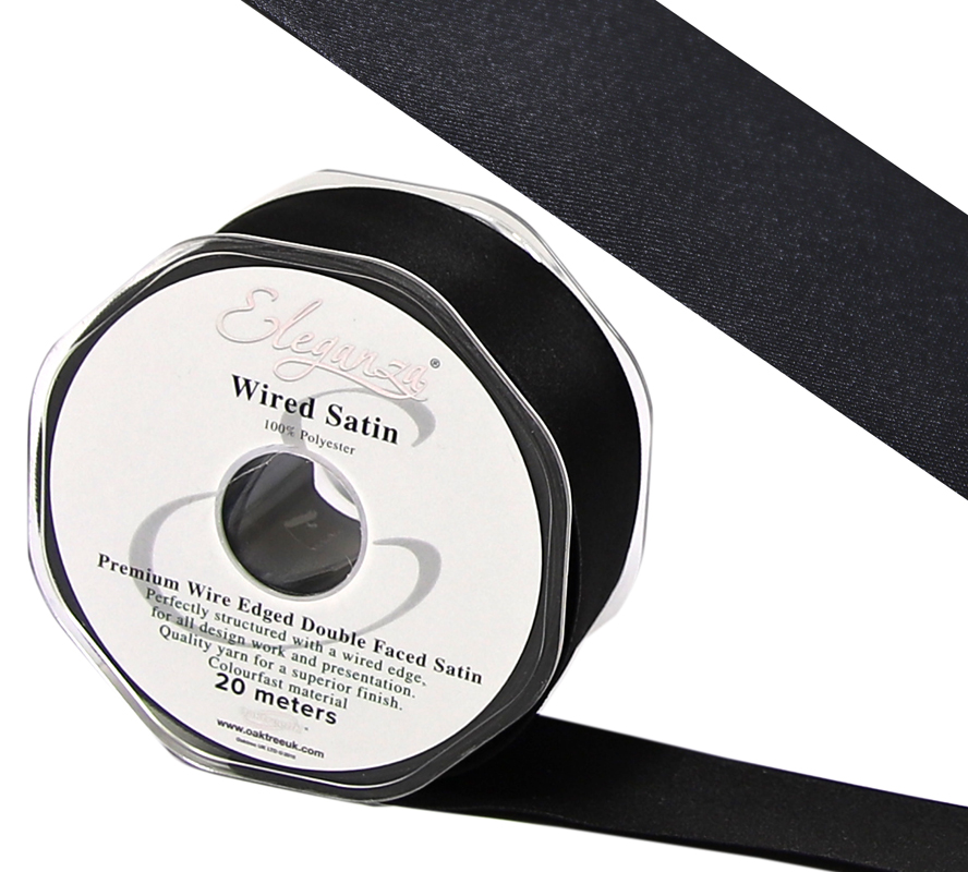 Eleganza Wired Edge Premium Double Faced Satin 38mm X 20m Black No.20