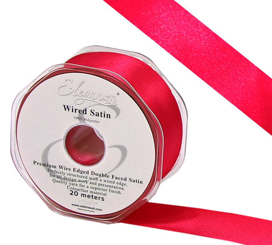 Eleganza Wired Edge Premium Double Faced Satin 38mm X 20m Hot Pink No.34
