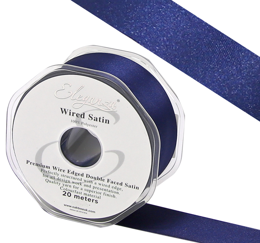 Eleganza Wired Edge Premium Double Faced Satin 38mm X 20m Navy Blue No.19