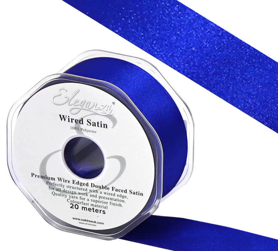 Eleganza Wired Edge Premium Double Faced Satin 38mm X 20m Royal Blue No. 18