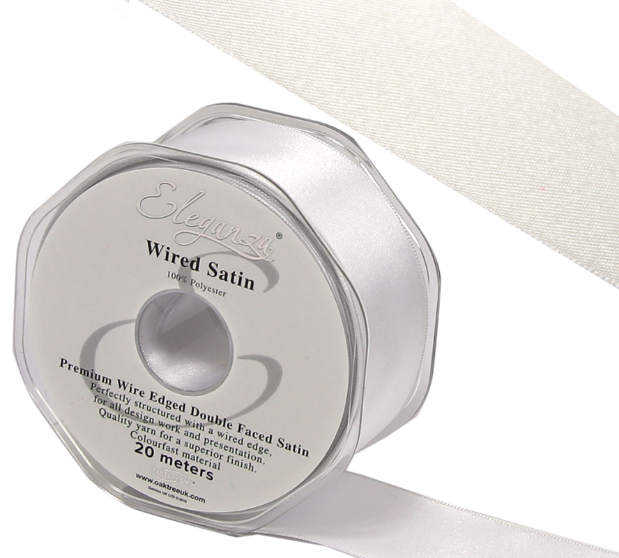 Eleganza Wired Edge Premium Double Faced Satin 50mm X 20m White No.01