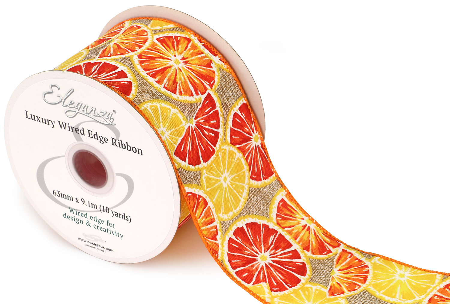 Eleganza Wired Edge Ribbon Orange Slices Natural 63mmx 9.1m