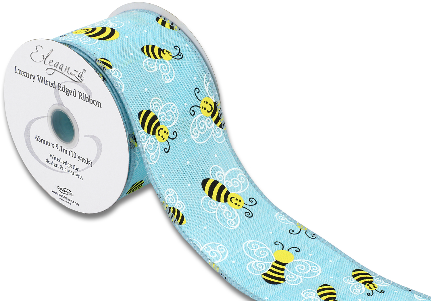 Eleganza Wired Edge Smiley Bee Tiffany Blue 63mm X 9.1m Design No.405