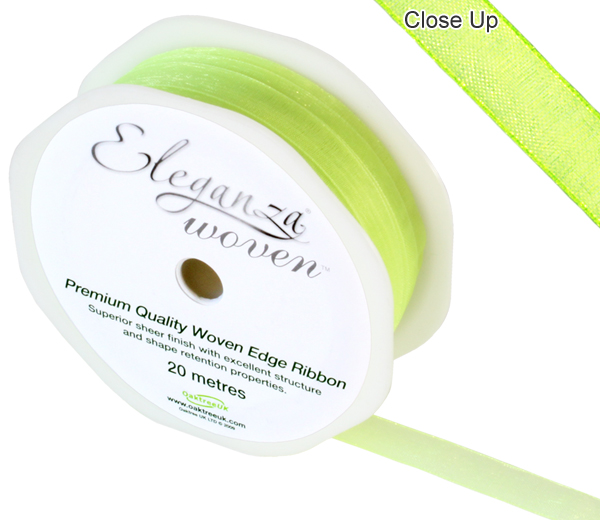 Eleganza Woven Edge Ribbon 10mm X 20m Lime Green No.14