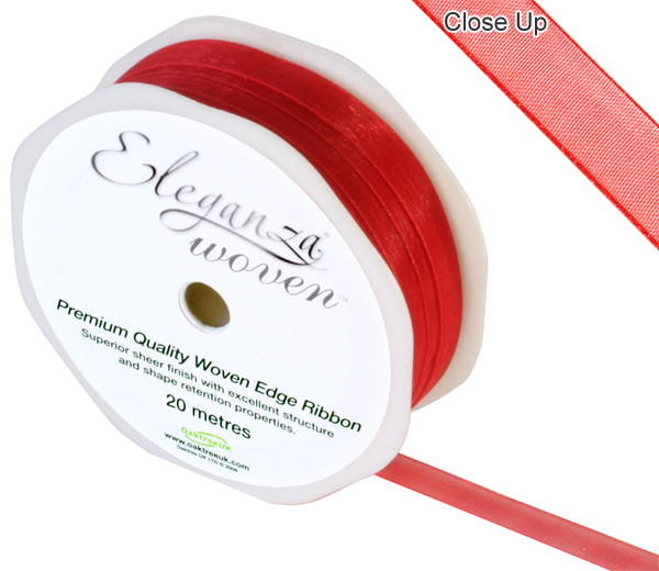Eleganza Woven Edge Ribbon 10mm X 20m Red No.16 quantity
