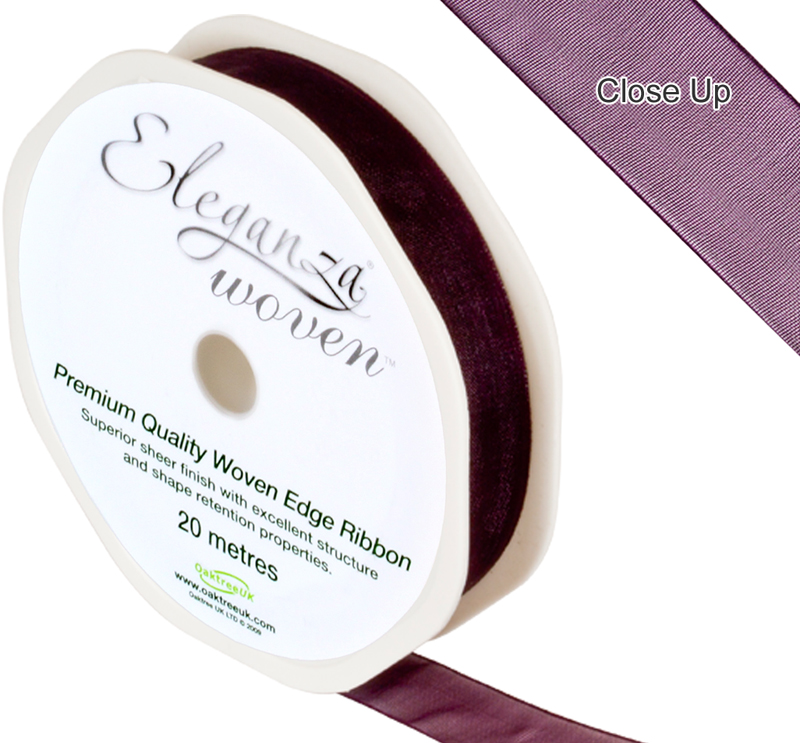 Eleganza Woven Edge Ribbon 15mm X 20m Aubergine No.32