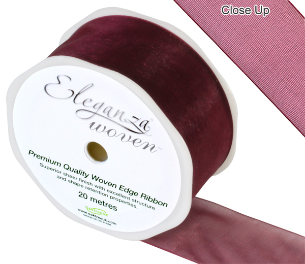 Eleganza Woven Edge Ribbon 38mm X 20m Burgundy No.17 quantity