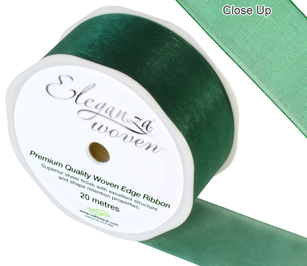 Eleganza Woven Edge Ribbon 38mm X 20m Green No.50