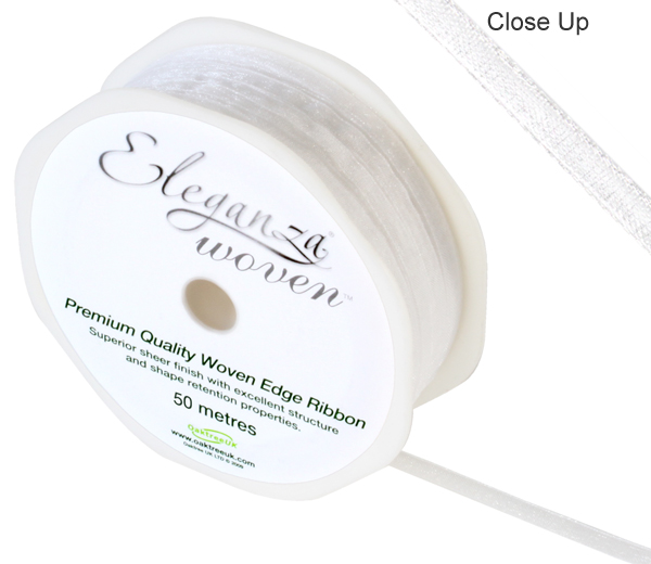 Eleganza Woven Edge Ribbon 3mm X 50m White No.01