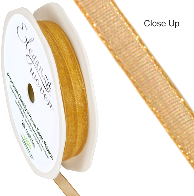 Eleganza Woven Edge Ribbon 6mm X 20m Gold No.35a
