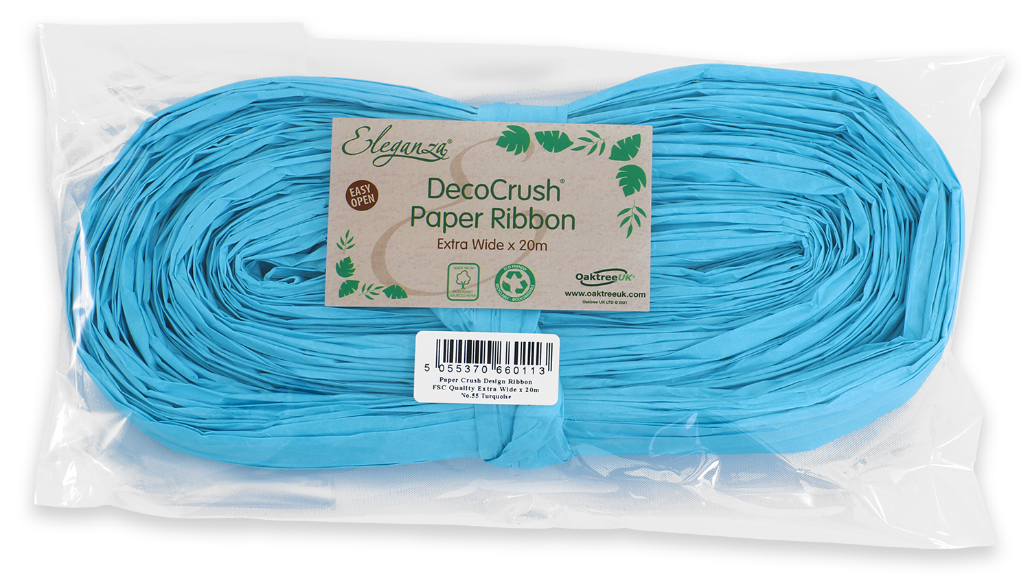 Paper Crush Design Ribbon Fsc Quality Extra Wide X 20m No.55 Turquoise